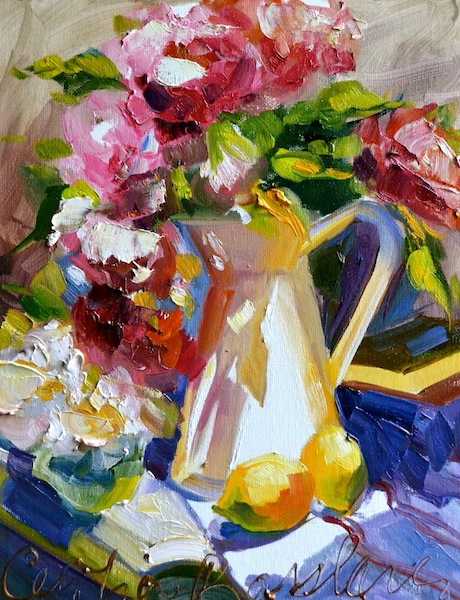 The second Sunlit painting in a series of interiors that celebrate the warmth of sunlight rushing through beautiful French windows. This lovely room sports beautiful ornate mirror frames and a glimpse of a book on the foot stool, reminiscent of all the most wonderful luxuries life can possibly offer!